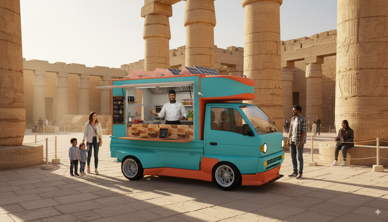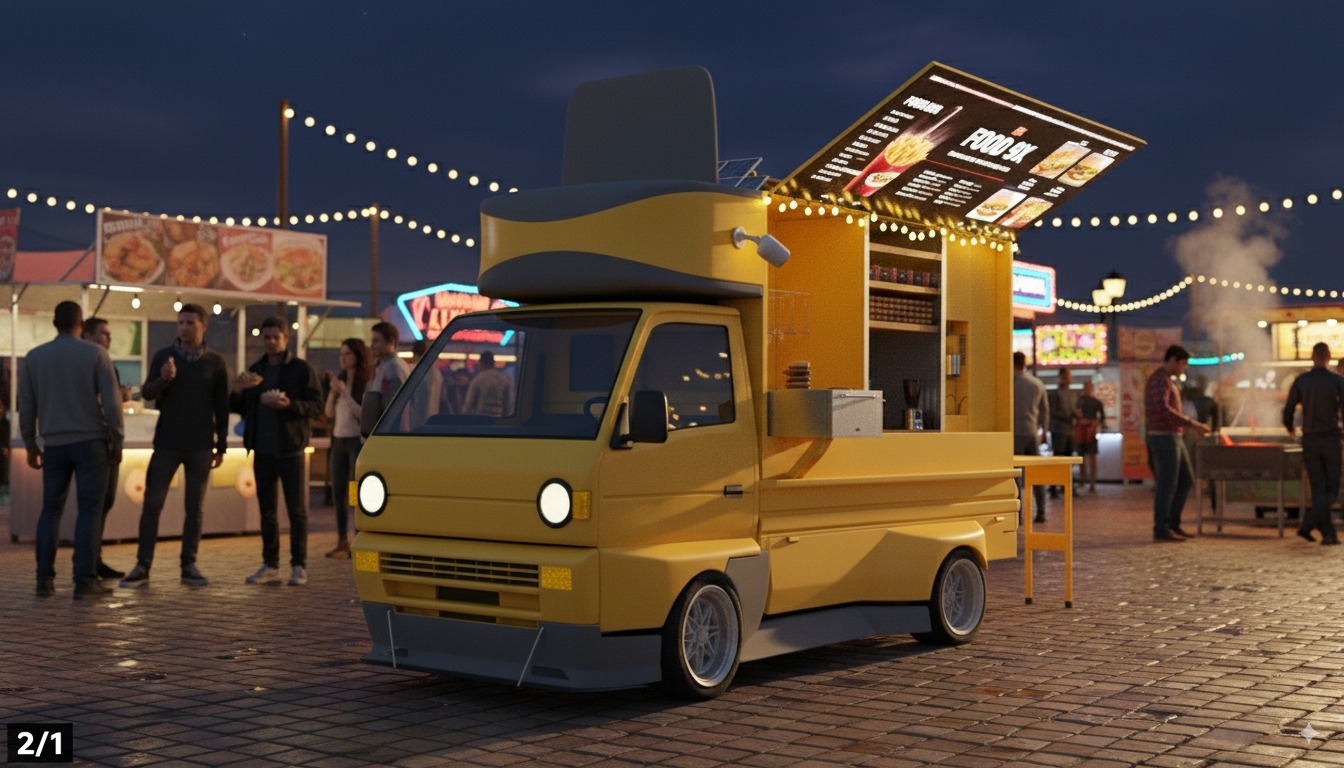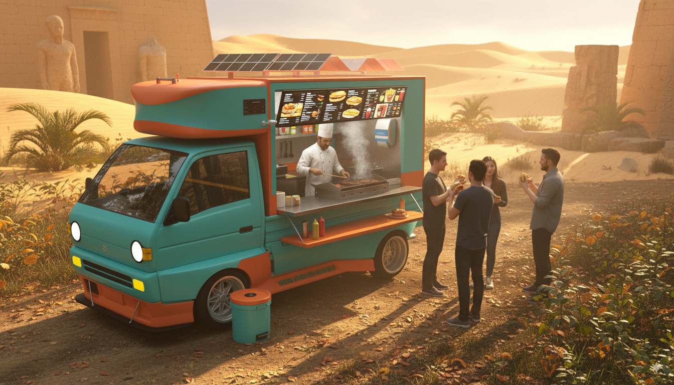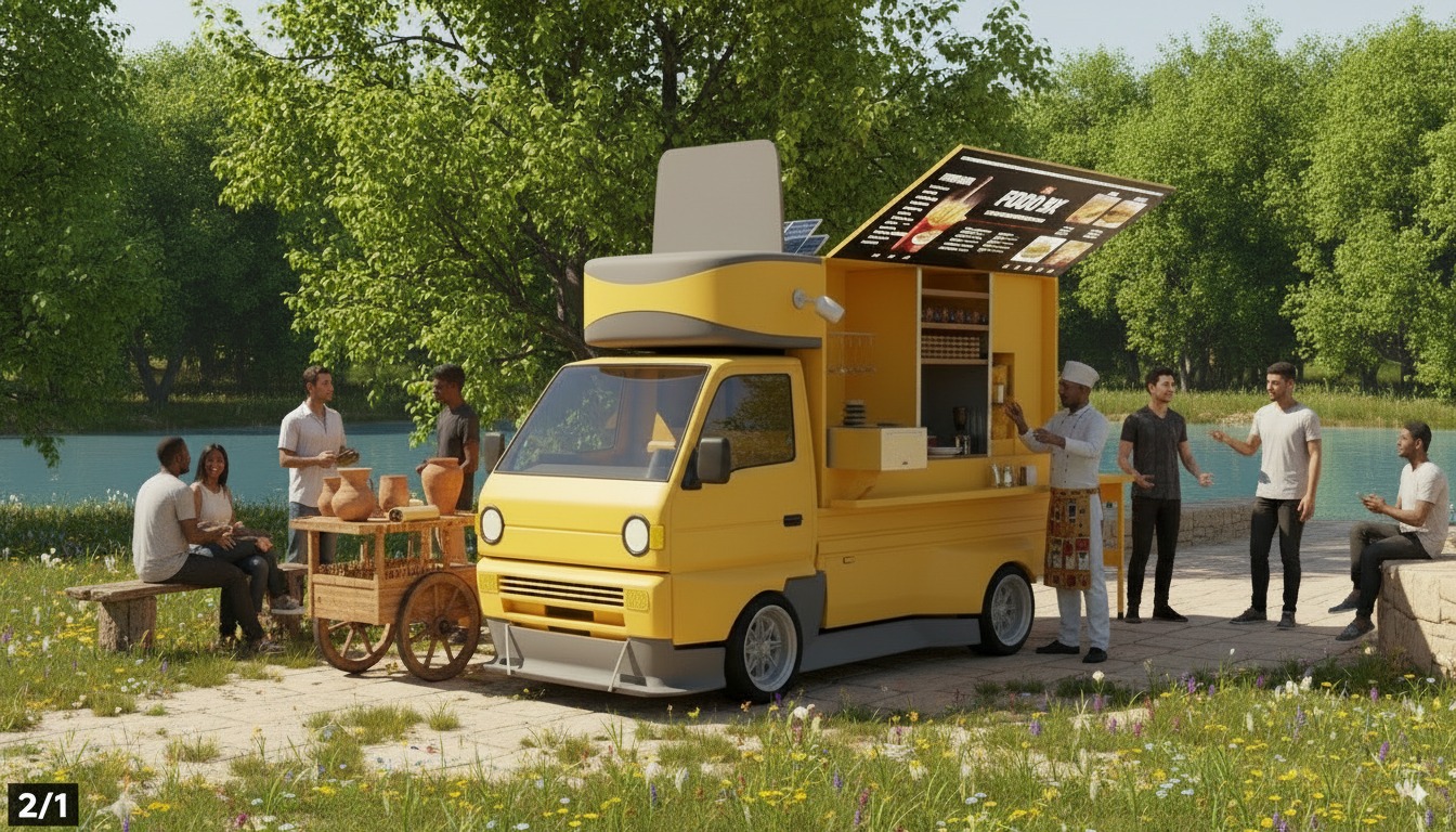 eco-friendly smart food trucks offering nine cuisines, creating youth jobs, redefining street food culture, and buildin